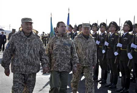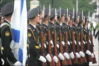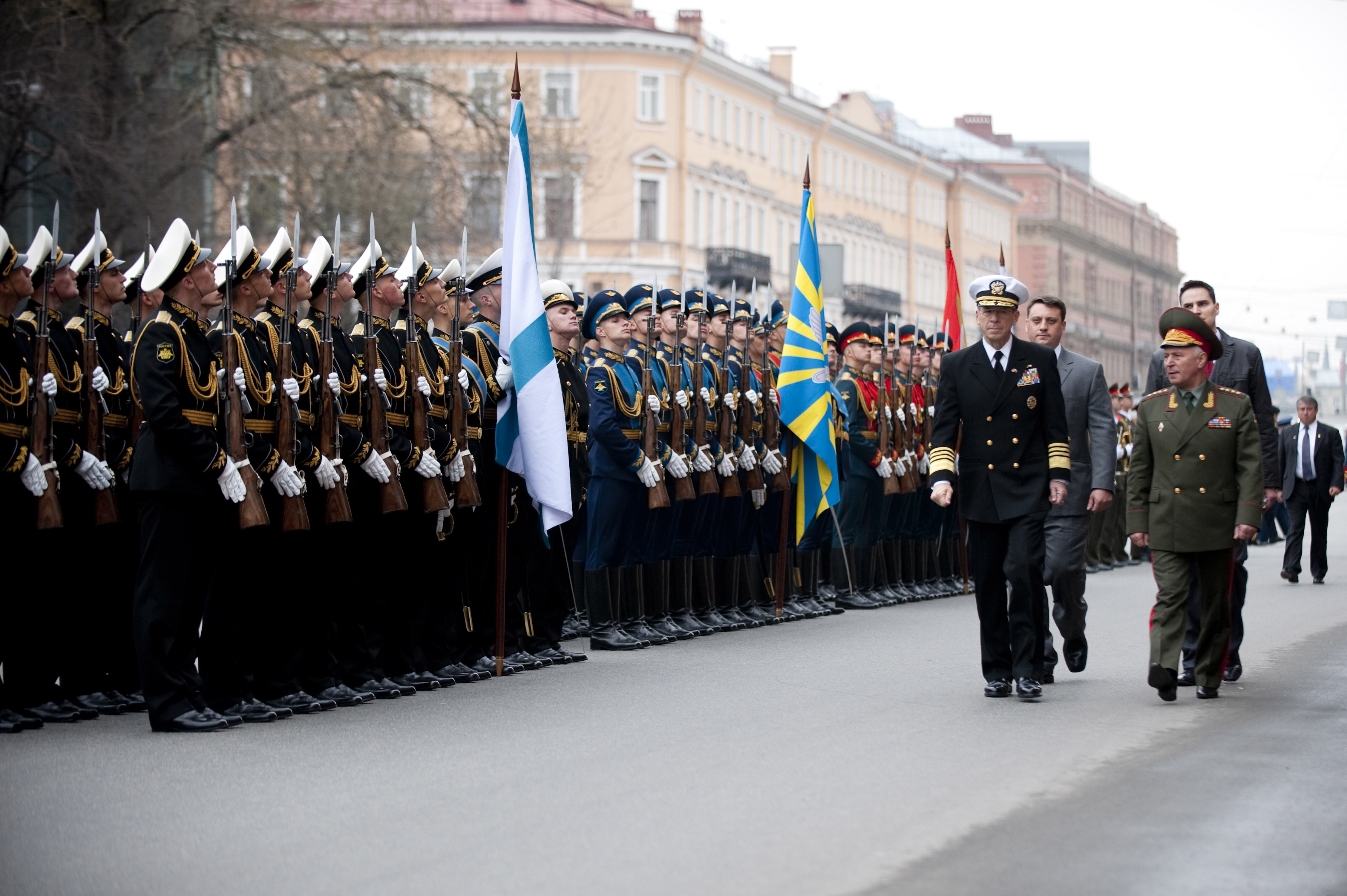 Russian military honor guard welcomes Chairman of the Joint Chiefs of Staff Adm. Mike Mullen to St. Petersburg, Russia on May 6, 2011.